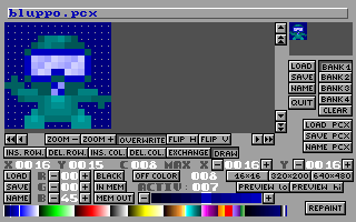 and deleting rows and columns, changing sprite/picture size, changing palette, working with several sprites, etc...